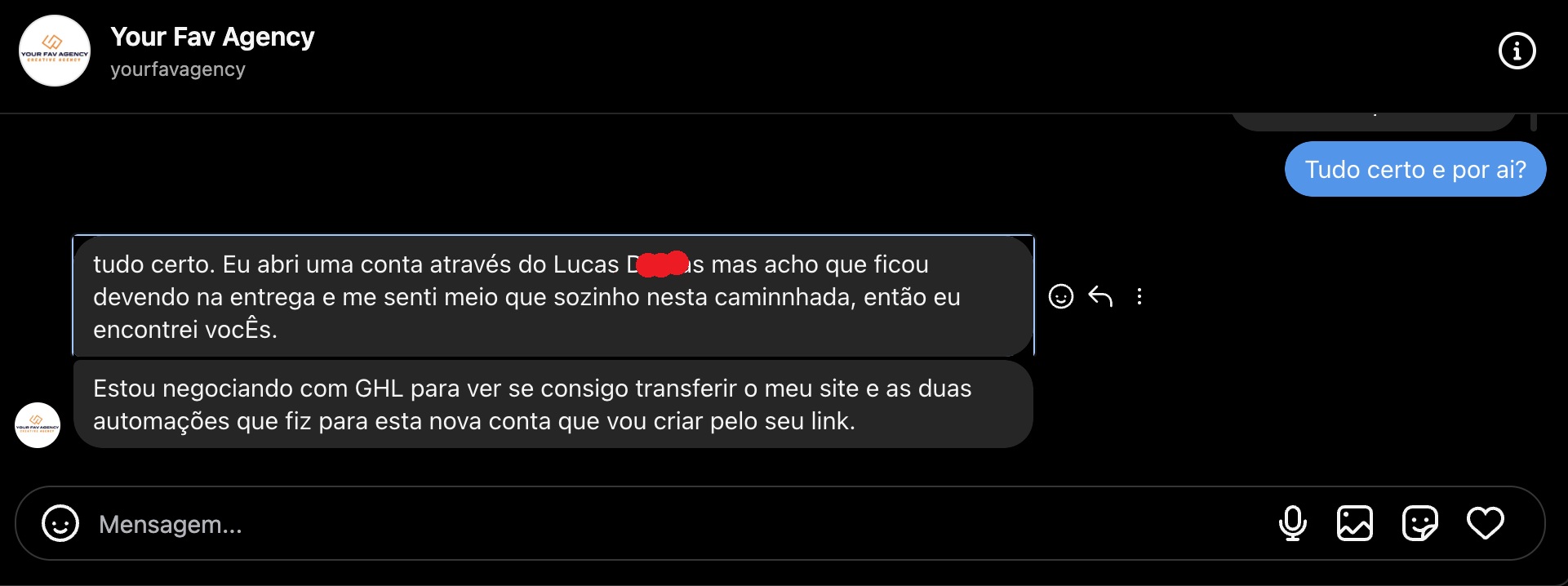 Eu estava com muitas travas em relação ao comercial, precificação… tava meio perdido na agência, principalmente na parte de organização. Tanto a comunidade quanto o GoHighLevel me deram um norte pra tudo.