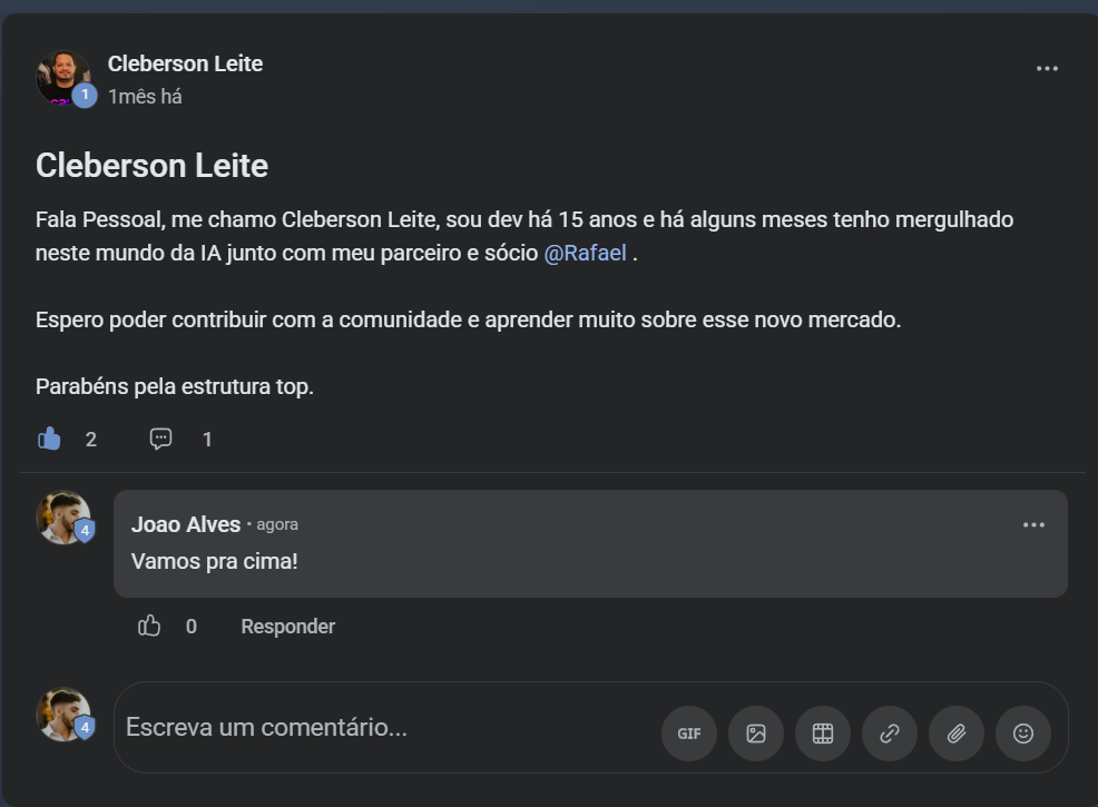 Se nao fosse essa comunidade eu não teria conseguido ter montados os snapshots, as pipelines e os workflows que eu montei em 3 dias de comunidade"
